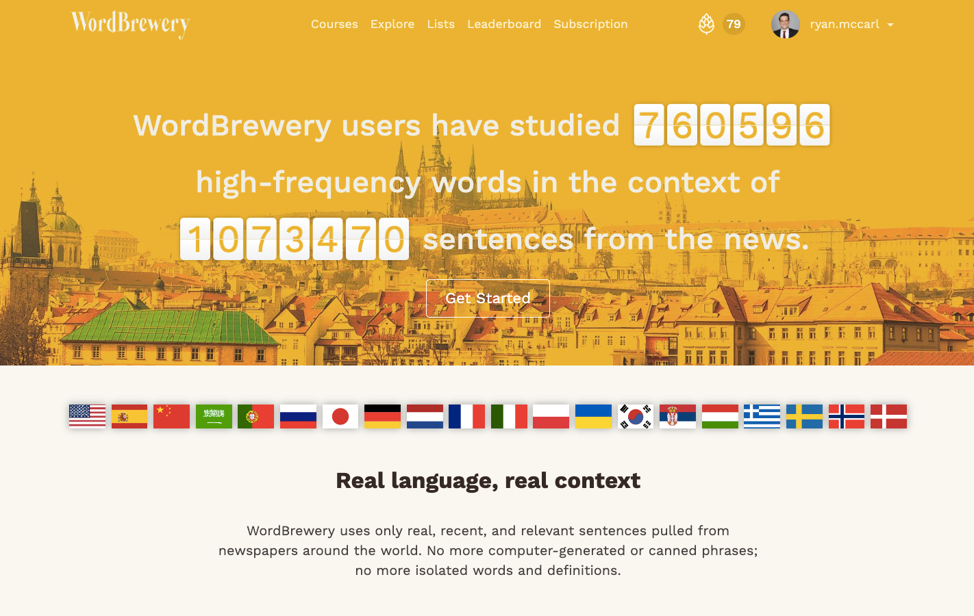 I designed WordBrewery in 2015 as a tool to keep up my language study during spare moments in my day job as a lawyer. The first version was an offline command line tool called "Parser." Its sentences came from public-domain books at Project Gutenberg. I then decided to build an online app along with a web scraper to gather sentences from news websites.