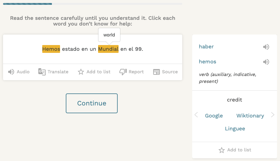 The app has since automatically curated millions of authentic sentences in twenty languages, then used these sentences to teach high-frequency vocabulary in context to thousands of users. You can read more about its methods in the blog posts below:
